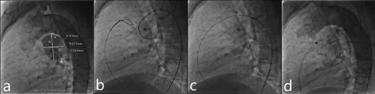 成人期DAAの治療に関しては,胸骨正中切開または左側開胸による開胸手術が一般的であり,閉鎖栓を用いた経皮的閉鎖術の報告はほとんどない.開胸手術では人工心肺を用いた瘤切除,交通孔の直接閉鎖もしくはパッチ閉鎖,人工血管置換が施行されるているが1, 3, 5),皮膚切開の範囲が大きく,血胸,乳び胸や反回神経損傷などのリスクがある.また,動脈硬化による石灰化を伴っている場合は血管壁の脆弱性から直接閉鎖は難易度が高くなる.近年,大動脈ステントグラフト内挿術(Thoracic endovascular aneurysm repair: TEVAR)も施行されているが4, 5),22 Fr程度の大口径sheathを用いるため通常カットダウン法によるアプローチが必要となる.また,重大な合併症に脳梗塞や脊髄虚血による対麻痺が挙げられる.