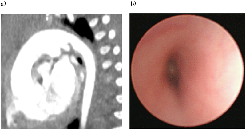術前と比較して左気管支断面の変形は改善している(Fig. 3a).