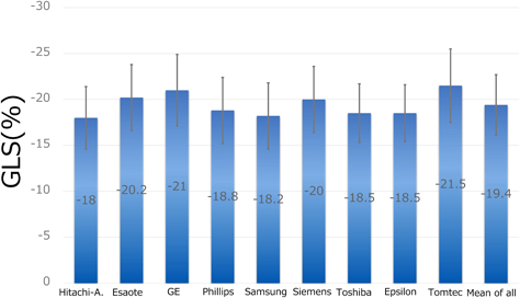 GLS among seven venders is compared and analyzed with a single observer. When the subjects who have varied wall motion, such as healthy volunteers and patients with CHF, were included, few differences were identified among venders. CHF: congestive heart failure, GLS: global longitudinal strain. Reprinted with permission from the reference 16).