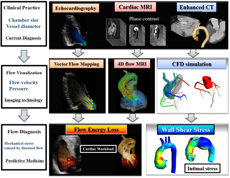 | Phase-contrast MRI | Echocardiography | Computational fluid dynamics (CFD) |