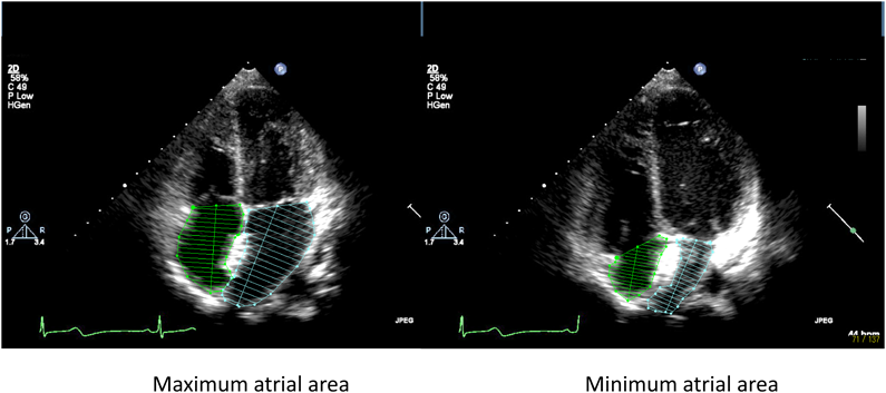 心房面積の計測は,同一検者により連続3心拍で計測し,各計測値の平均値を求め,体表面積(BSA)で補正して標準化した.