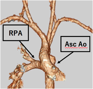 右肺動脈が上行大動脈から直接起始していた(Fig. 1).