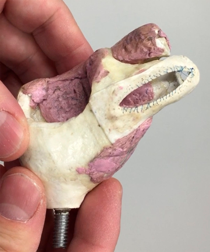 このような基本手技の練習を行いながら,さらに心臓モデルを作って縫合練習を行いました.心臓標本を参考にして,粘土で心臓モデルを作成してシミュレーションを行いました(図4).現在は,CT情報を用いて心臓手術シミュレーションモデル(クロスメディカル社https://www.xcardio.com/standard/surgery/)を作成しましたので,それを利用して練習が可能です.実際の手術経験(執刀数)も経験として重要ですが,執刀前にどれぐらいトレーニングができており,質の高い手術を行えるかということがより重要です.