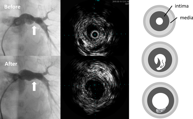 | Stiff lesion | Narrowing due to stiff and degenerative vascular wall after surgical anastomosis | Partially effective Indication for cutting balloon angioplasty |