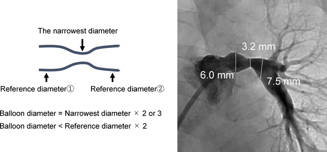 | ・Determine equipment, including the size and type of a balloon catheter and an appropriate guidewire according to angiographic findings |