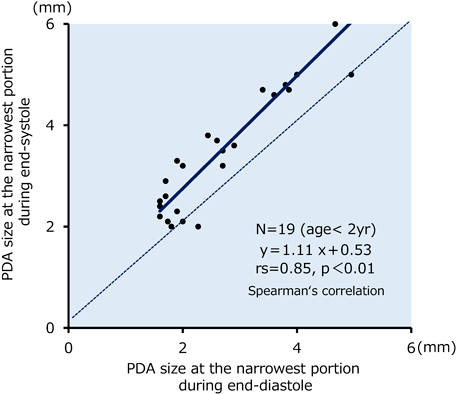 PDA径は心周期の中で変化し収縮期に最大化するが,収縮期には造影剤がwash outされるためPDA径の計測は難しい.収縮期のPDA径をみるためには,エコーによる観察,バルーンで閉塞した上での大動脈造影などが考えられるが,特に2歳未満の症例では収縮期に拡張期の1.3倍前後にまで拡大する可能性があることを知っておく(Fig. 1).