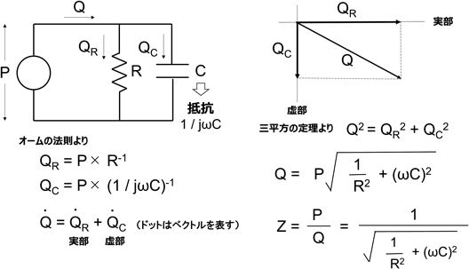 循環の基本3要素である肺動脈圧(肺循環駆動圧)(P),肺血流量(Q),肺血管抵抗(R)はOhmの法則に従い以下の平衡関係を維持する. 先天性心疾患による短絡や狭窄の存在はPを変化させ,Rが不変ならば,それに応じてQもまた変化する.各因子において,P(肺動脈平均圧として)<20 mmHg, Q≒4~5 L/分/m2,R<3 Wood unit・m2が正常範囲であると考えられる2).また定常流において,QはPoiseuilleの法則から以下のようにも表される. ここでrは血管径,ηは血液粘性,lは血管長を表す.式1と2より となり,血管抵抗は単純にその循環を担う血管径と長さに依存することになる.肺循環の抵抗成分を担う径200 µm以下の血管は生後10日前後で中膜平滑筋層が急速に弛緩し,以後生後3か月頃まで緩徐にこの反応は続く.従って生後2か月までは急速な肺動脈径の拡大がみられ,これは4歳頃まで続くとされる3).血管径が大きくなれば指数関数的にRは減少するため,胎生期から生後に生じる肺血管の成熟と血管径の増加はRを大きく低下させる.しかしながら,前述の通り肺循環は非常に高い循環許容量を持つため,肺血管キャパシタンス(C)の因子を看過できない.Cは一般的に以下の式で表される. ここでSV(stroke volume)は肺一回拍出量,PP(pulse pressure)は肺動脈の脈圧(収縮期圧と拡張期圧の差)を表す.Cの正常値は健常成人においては3.2±0.9 mL/mmHg/m2とされる4).小児の正常値に関しての報告はないが乳児心室中隔欠損における検討では2.7(2.2~3.3) mL/mmHg/m2であり,成人のそれよりも若干低値であると考えられる5).そこで肺循環を,脈圧を加味した交流RC並列回路と捉え,肺循環インピーダンス(Z)(交流回路の抵抗=拍動抵抗)を知る必要がある(Fig. 1).抵抗成分を流れる血流をQRとし,キャパシタンス成分を流れる血流をQCとしたならば,抵抗成分とキャパシタンス成分にかかるPは等しいため以下のようになる. ここでjは虚数,ωは振動角(=心周期)を表し,キャパシタンス成分にかかる抵抗は1/jωCとなる.Qは実部QRベクトルと虚部Qcベクトルの合成ベクトルとして示されるため三平方の定理より以下のようになる. したがってZはPをQで除した値であるので,以下のように表される. 式6からR上昇やC低下が循環抵抗を上昇させるためP上昇すなわち肺高血圧をもたらす.このように肺循環の真の循環抵抗を知るためにはRとCの両者を評価することが必要である.