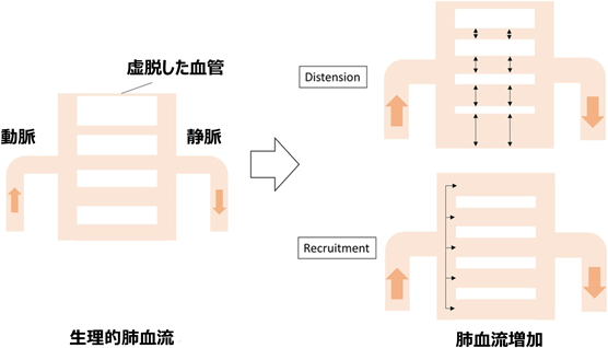 | 血管抵抗 | 高:10~20 Wood unit・m−2 | 低:1.5~2.5 Wood unit・m−2 |