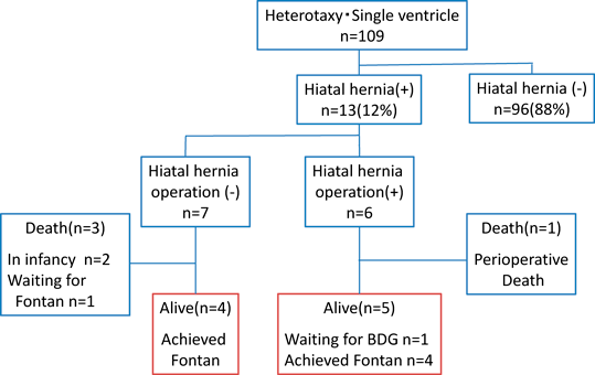 | BDG, bidirectional Glenn; HH, hiatal hernia; PAB, pulmonary artery banding; PV, pulmonary vein; SPS, systemic to pulmonary shunt; TAPVC, total anomalous of pulmonary vein connection. |
