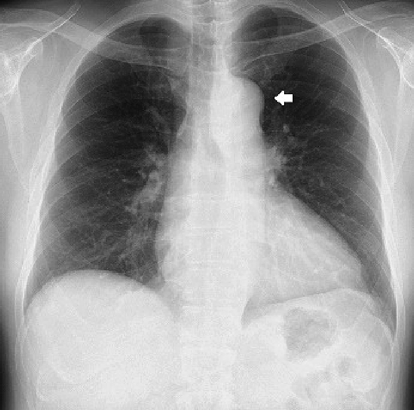 心胸郭比53%,左側大動脈弓陰影の突出を認めた(Fig. 1).